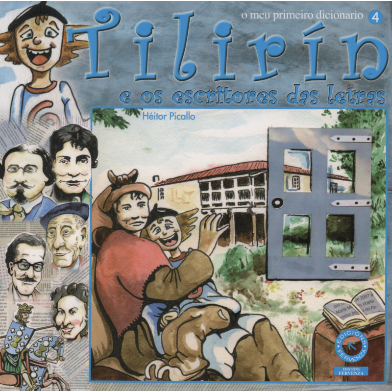 Diccionario ilustrado no que Tilirín ensina o nome dos escritores galegos famosos acompañándose de ilustracións.